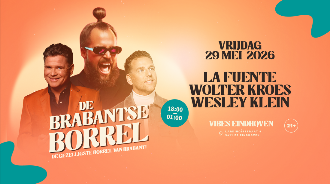 Onder andere La Fuente, Wolter Kroes & Wesley Klein maken deze borrel grandioos. Niet allemaal Brabants, maar die Brabantse gezelligheid nemen jullie wel mee toch?